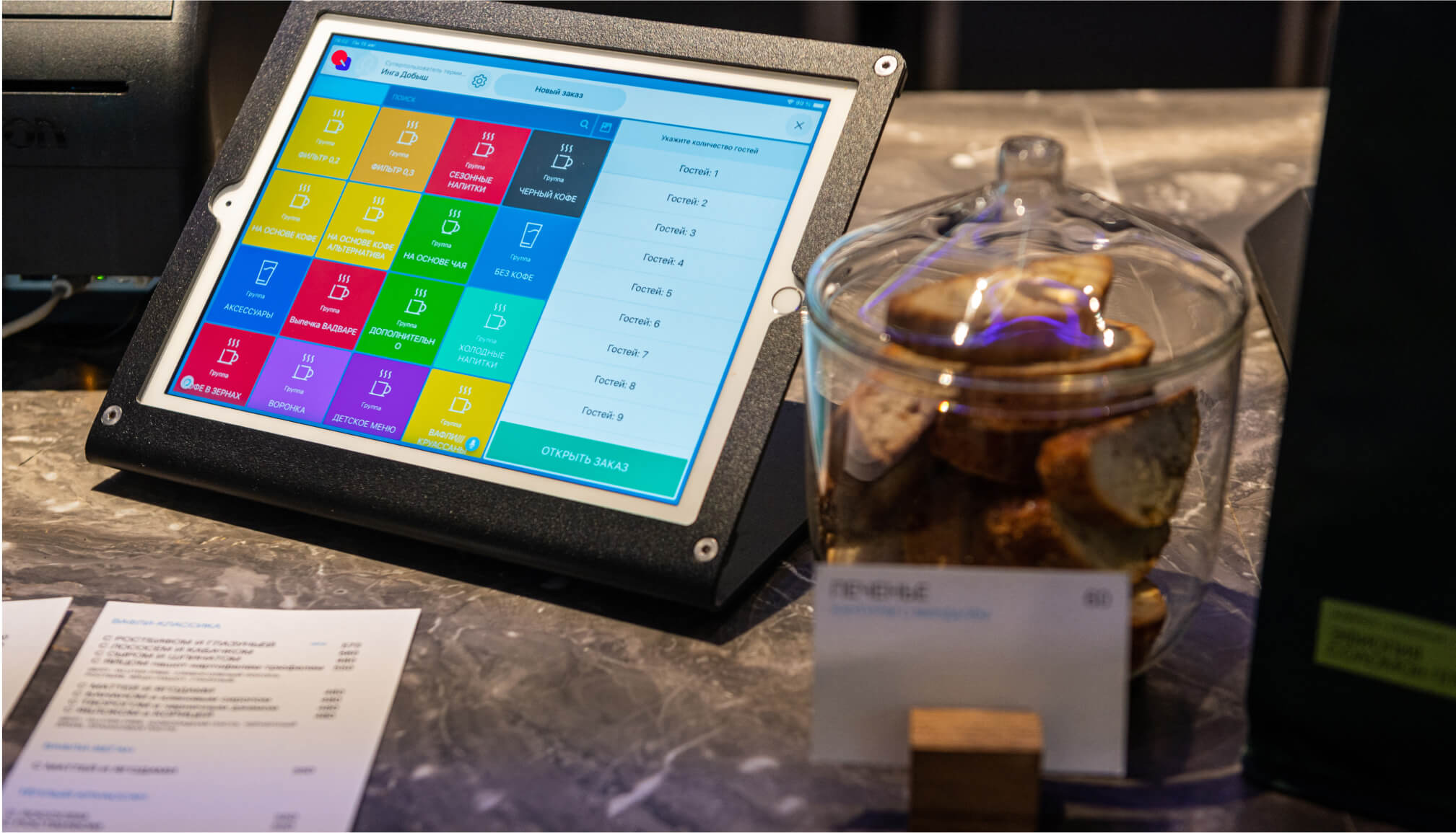 Заказ от столика в кухню. Очередь заказов, техкарты к блюдам