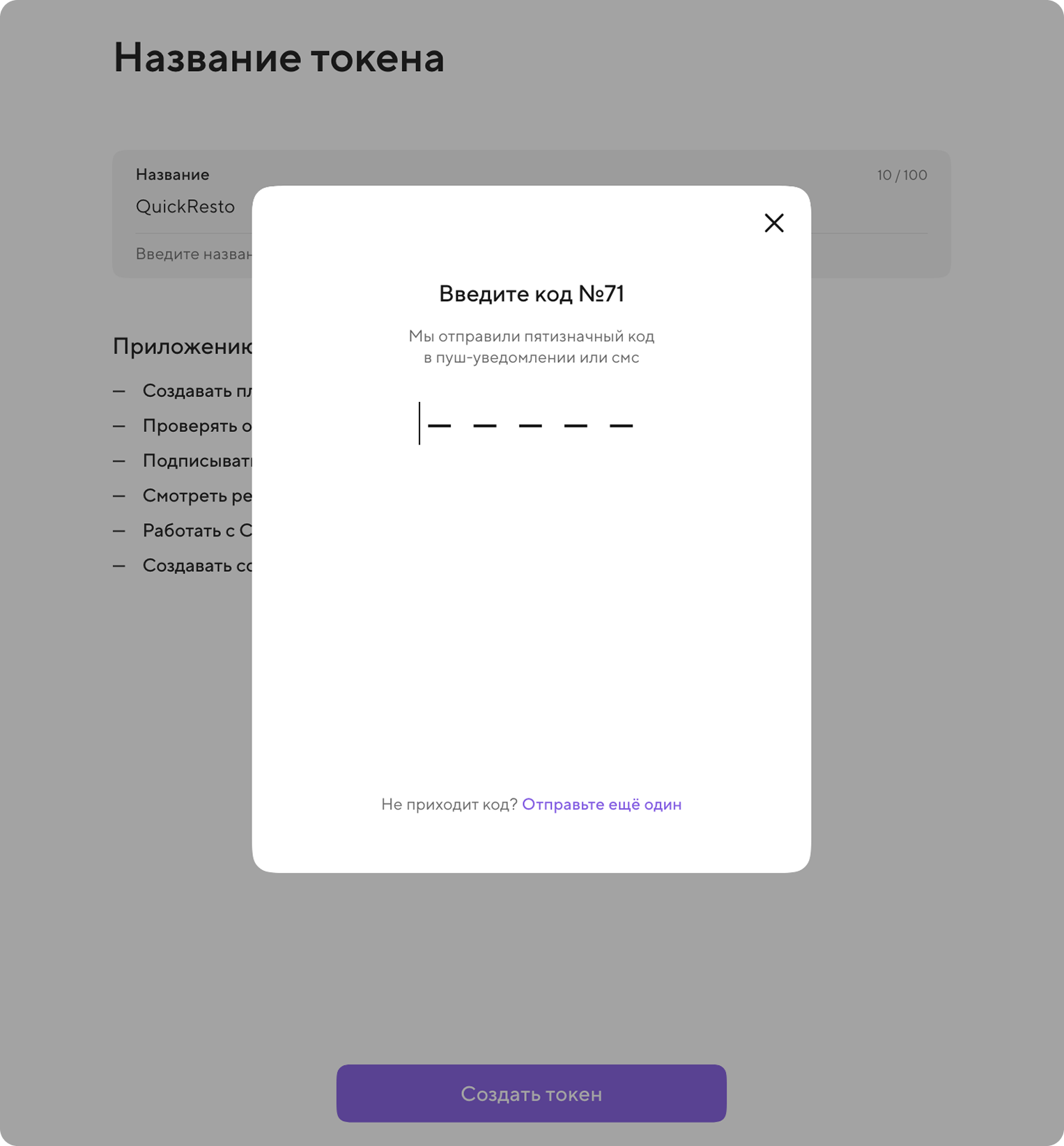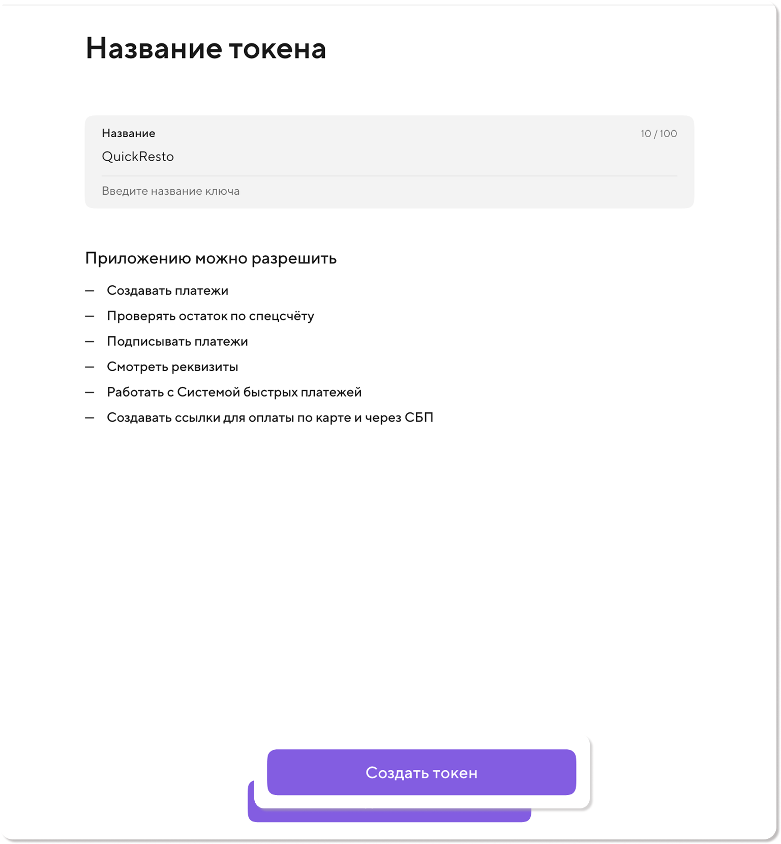 4) Укажите название для вашего ключа и нажмите Создать токен.