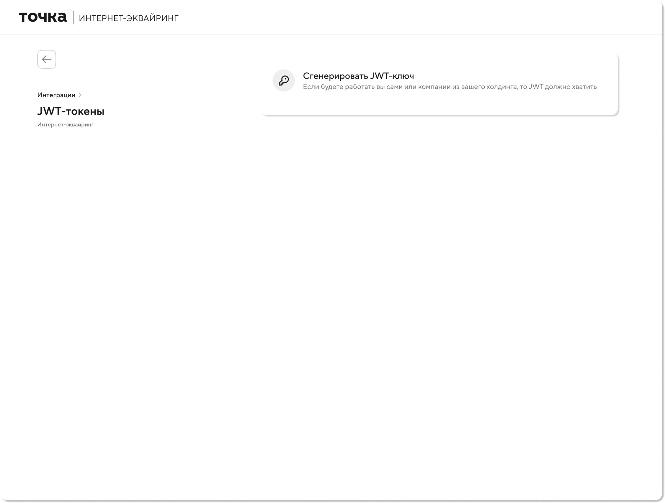 Выпуск JWT-ключа в интернет-банке, если у вас нет открытого счета