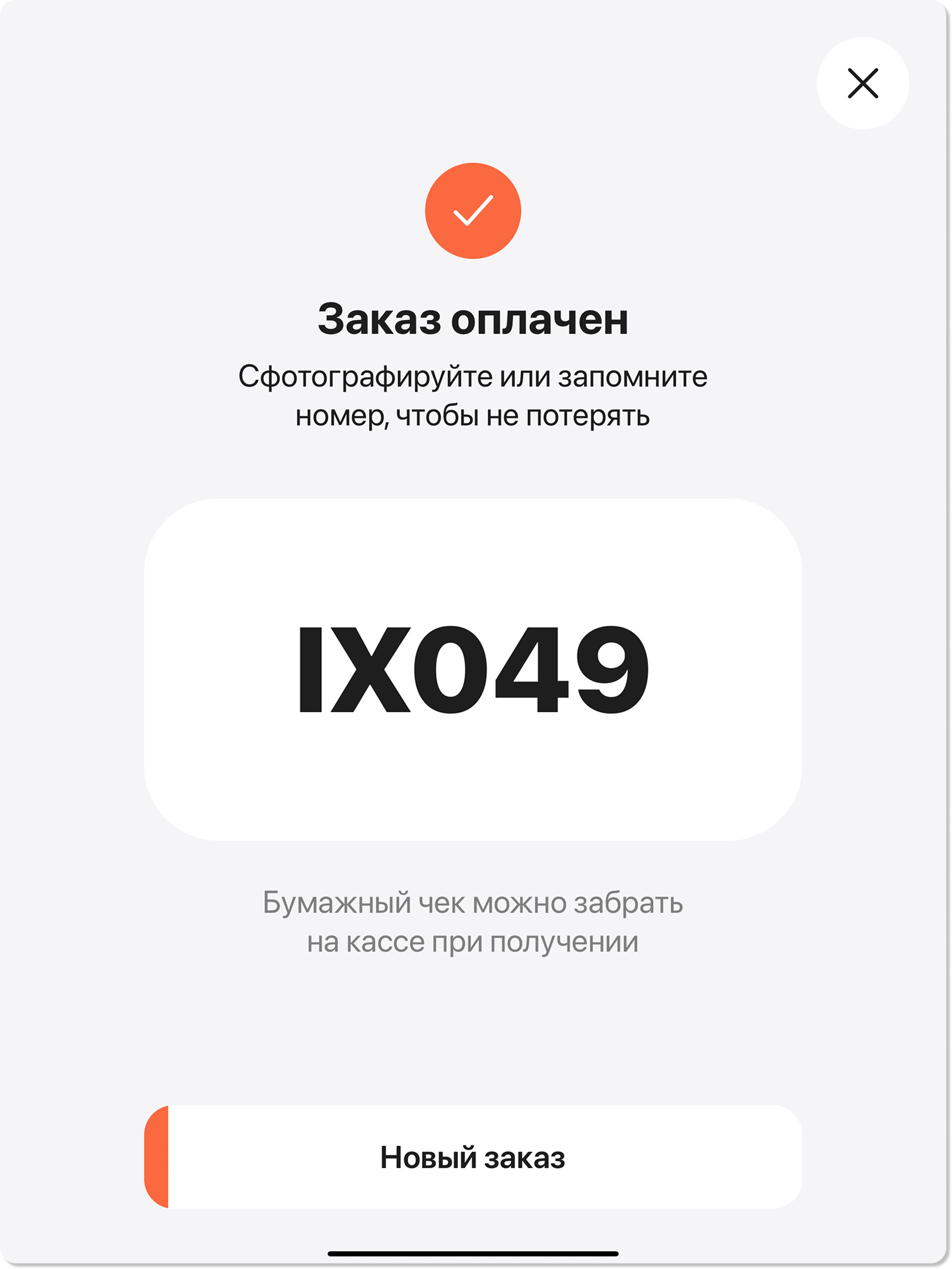 7. После успешной оплаты на экране появится номер вашего заказа. Сфотографируйте его или запомните, чтобы назвать при получении на кассе.