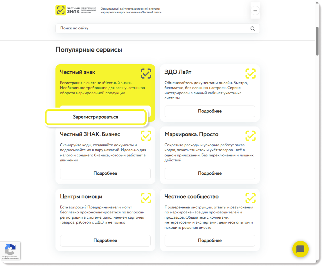 1. Перейдите на компьютере на сайт честныйзнак.рф.