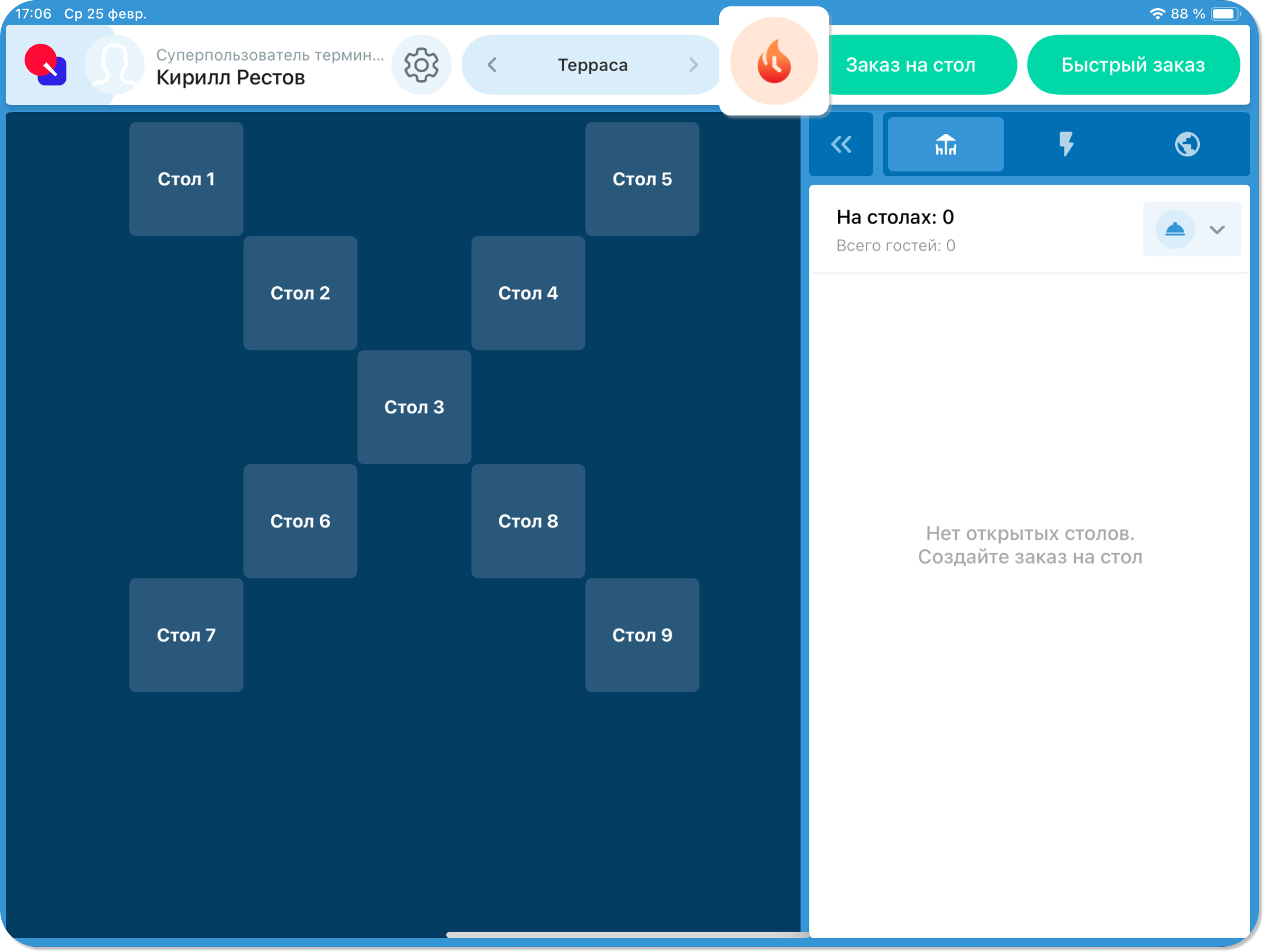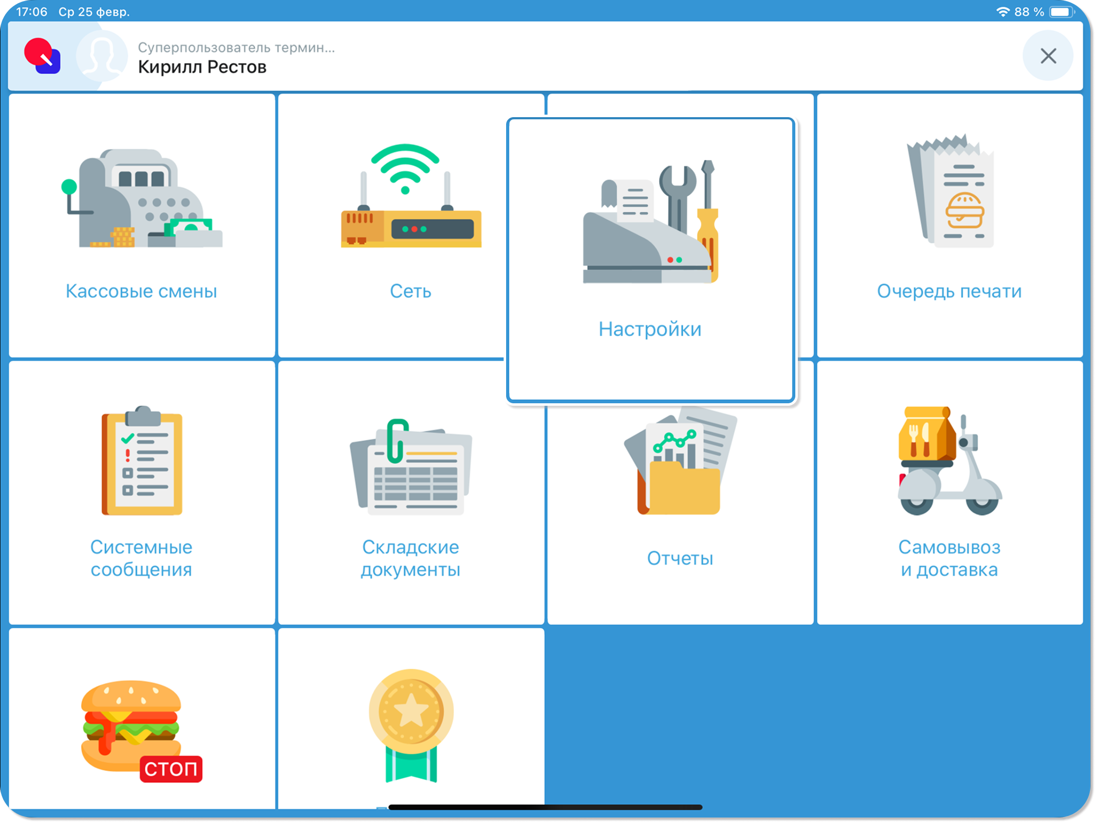 При наличии любых изменений, которые отличаются от стандартных настроек, на кассовом терминале появится индикатор в виде «огонька». Нажатие на этот индикатор мгновенно переведёт вас в раздел с текущими настройками, позволяя оперативно их проверить или скорректировать.
