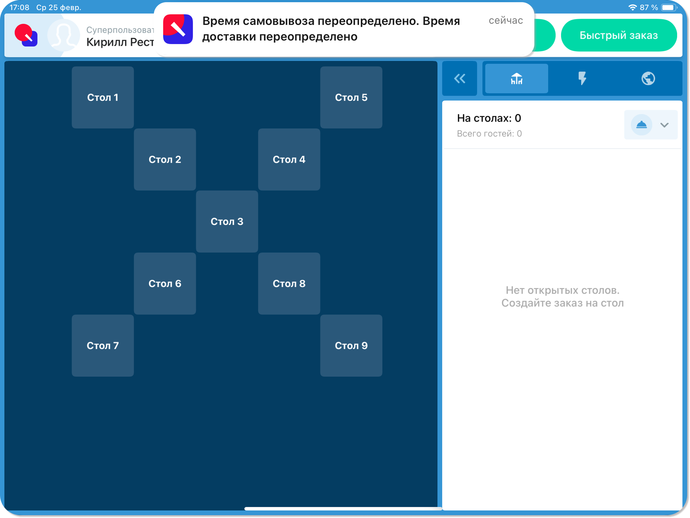 В кассовом приложении Quick Resto вы можете настроить звуковые оповещения и их повторы, чтобы получать напоминания о повышенной загруженности заказов на самовывоз и доставку. Это поможет своевременно реагировать на рост числа заказов.